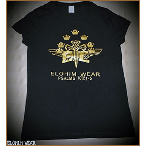 Women's Black T-Shirt with Gold Logo